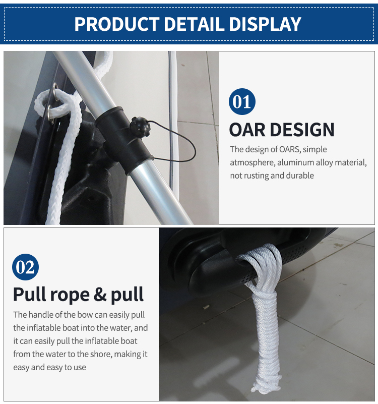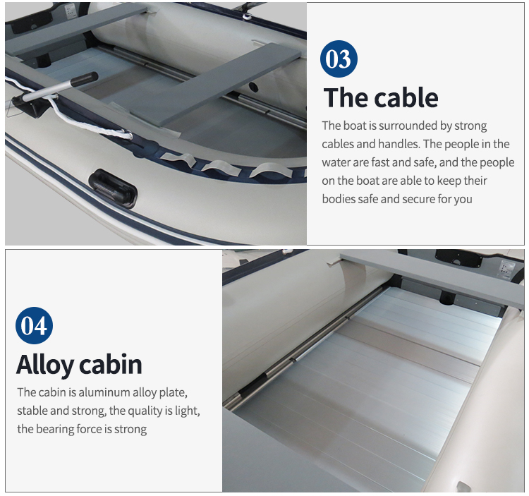 Packaging:The boat body in a woven bag, the floor in a woven bag, then in a carton.